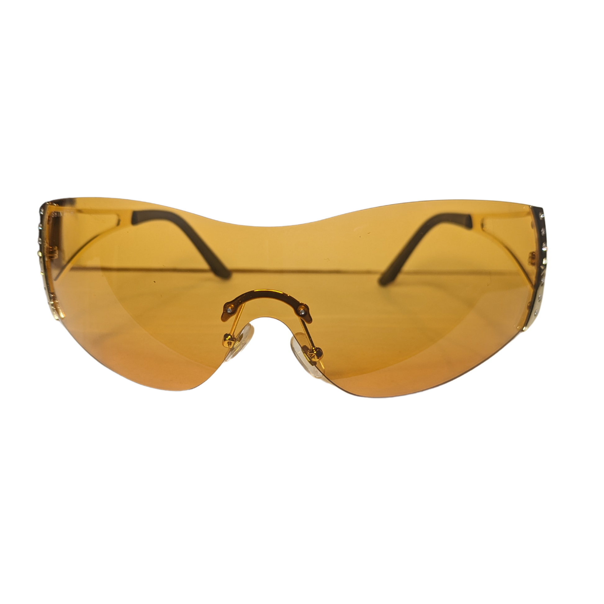 Shine bright and own every room with the Gold Superstar Sunnies—effortless glam meets bold style in a rimless gold-metal frame with vibrant tinted orange lenses to turn heads wherever you go.